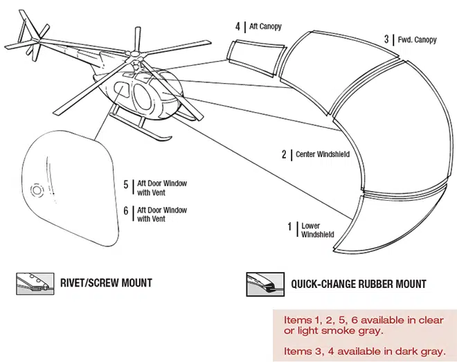 | Window Location | Windshields, Fwd. Canopy, Aft Door Windows |